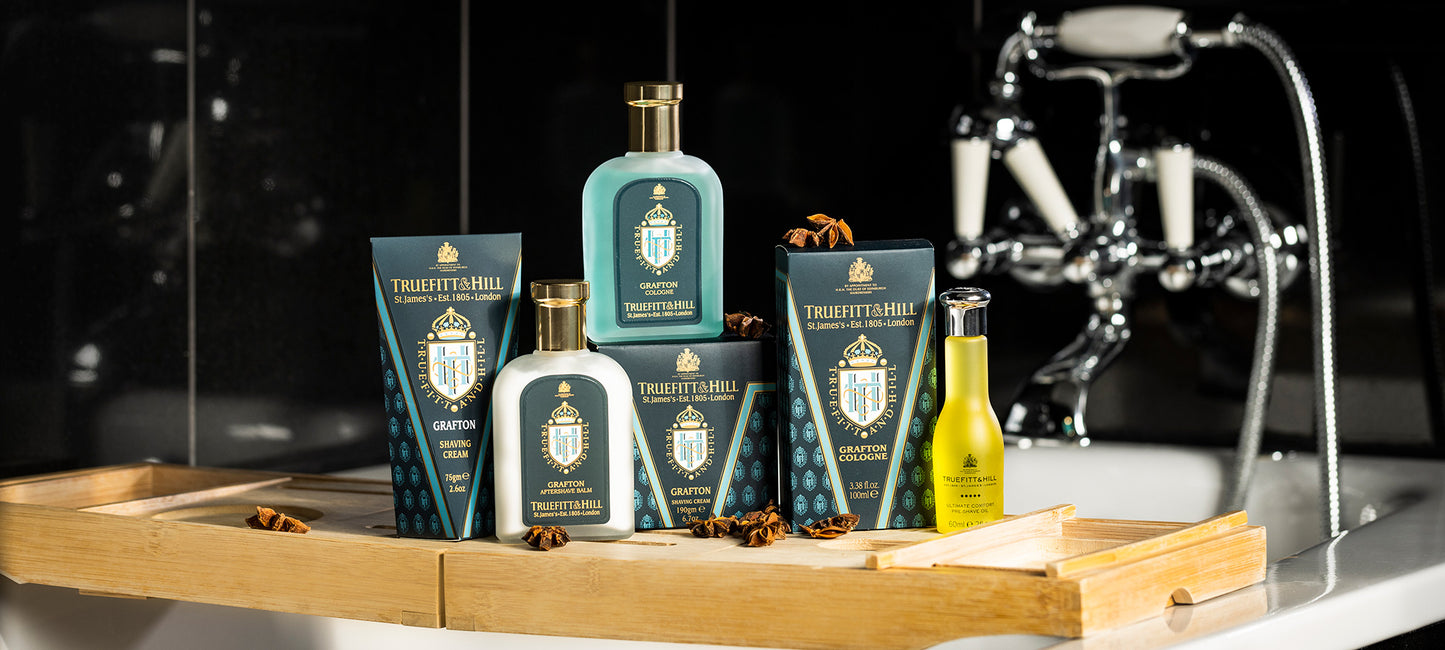 The name “Grafton” was given to Truefitt’s newly blended fragrance in 1983 at the suggestion of one of HMS Grafton’s officers who, while being attended to by a Truefitt’s barber, particularly liked this unmistakably masculine fougère aroma and suggested that the new fragrance be named after the gracious line of HM battleships.