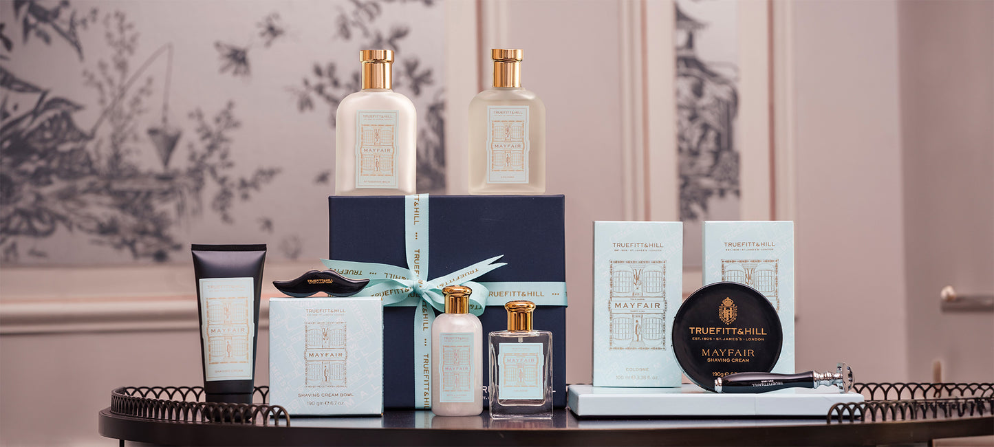 A modern interpretation of colognes of the past, Mayfair opens with fresh notes of lemon and mandarin, whilst an herbal whisper of rosemary and bergamot mingles unexpectedly with a honeyed twist of neroli. A subtle note of musk grounds and completes this irresistible scent. For more information on the fragrance profile, see our Mayfair Cologne.