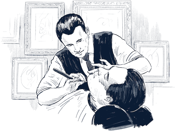 A half hour shave performed by one of our Master Barbers, followed by instruction on how to use an open (cut-throat) razor.
